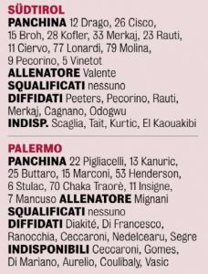 Gazzetta dello Sport: “Torna Graves. Le probabili formazioni di Sudtirol-Palermo”