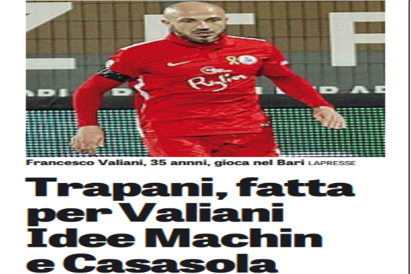 Gazzetta dello Sport: “Trapani, fatta per Valiani. Idee Machin e Casasola”