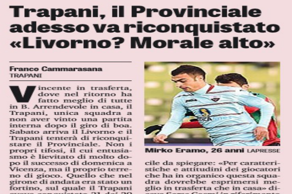 Gazzetta dello Sport: “Trapani, il Provinciale adesso va riconquistato: «Livorno? Morale alto»”