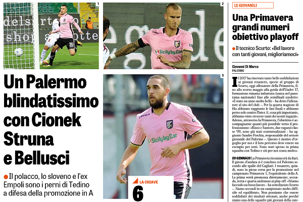 Gazzetta dello Sport: “Un Palermo blindatissimo con Cionek, Struna e Bellusci”