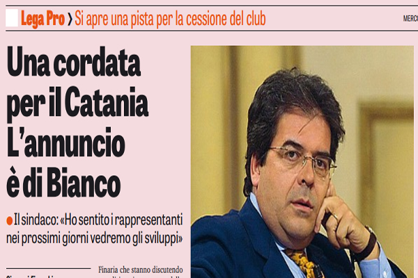 Gazzetta dello Sport: “Una cordata per il Catania, l’annuncio è di Bianco. Il sindaco: «Ho sentito i rappresentanti, nei prossimi giorni vedremo gli sviluppi»”