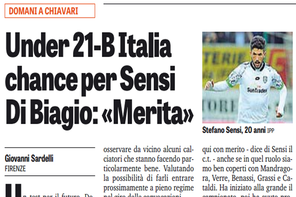 Gazzetta dello Sport: “Under 21-B Italia, chance per Sensi. Di Biagio: «Merita»”