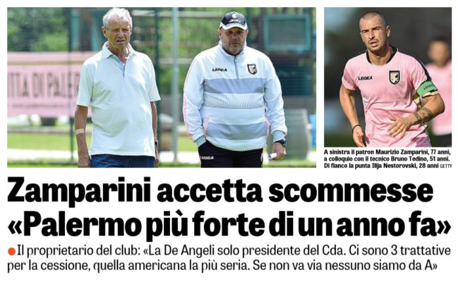 Gazzetta dello Sport: “Zamparini accetta scommesse: «Palermo più forte di un anno fa»”