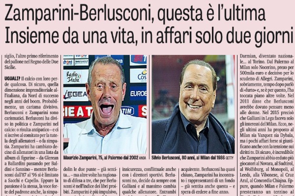 Gazzetta dello Sport: “Zamparini-Berlusconi, questa è l’ultima. Stanno vendendo ai cinesi: la fine di un’epoca? Mancheranno…”