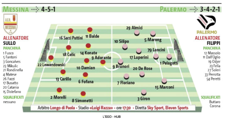 L’edizione odierna de “Il Giornale di Sicilia” ha stilato le probabili formazioni del match tra Messina e Palermo.