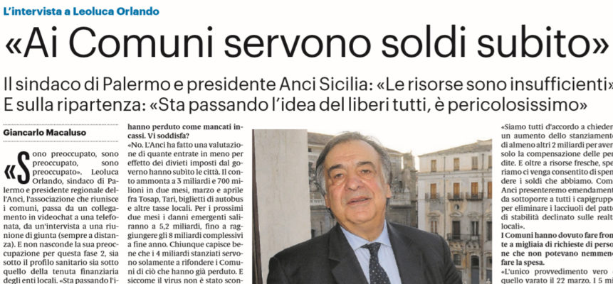 Gds: “«Ai Comuni servono soldi subito». Il sindaco di Palermo e presidente Anci Sicilia sulla ripartenza: «Sta passando l’idea del liberi tutti, è pericolosissimo»