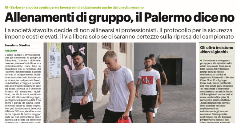 Gds: “Allenamenti di gruppo, il Palermo dice no. Il protocollo per la sicurezza impone costi elevati, il via libera solo se ci saranno certezze sulla ripresa del campionato”
