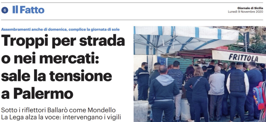 Gds: “Assembramenti anche di domenica, complice la giornata di sole. Troppi per strada o nei mercati. Sale la tensione a Palermo”