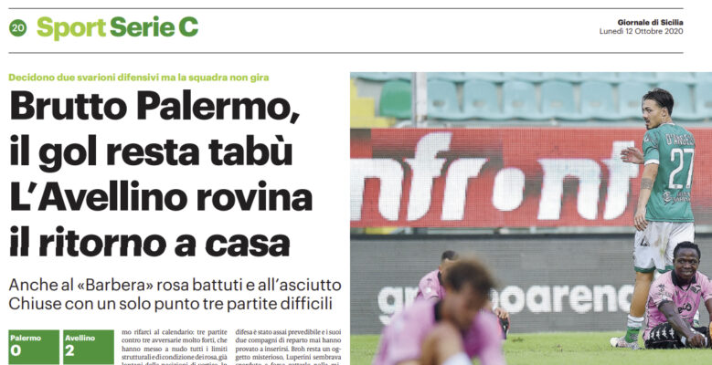 L’edizione odierna del “Giornale di Sicilia” si sofferma sulla sconfitta casalinga del Palermo. In tre partite un punto, due sconfitte e nessun gol all’attivo.
