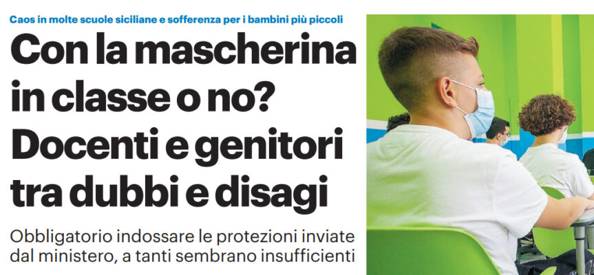 Gds: “Caos in molte scuole siciliane e sofferenza per i bambini più piccoli. Con la mascherina in classe o no? Docenti e genitori tra dubbi e disagi”