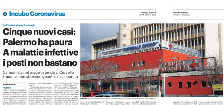 Gds: “Cinque nuovi casi: Palermo ha paura. A malattie infettive i posti non bastano”