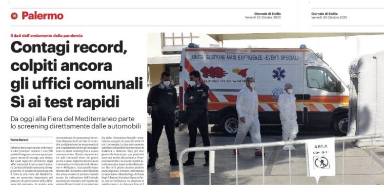 Gds: “Coronavirus. Palermo. Contagi record, colpiti ancora gli uffici comunali. Sì ai test rapidi”
