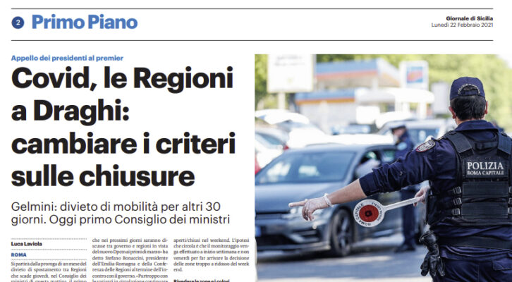 L’edizione odierna del “Giornale di Sicilia” si sofferma sulla richiesta delle Regioni di cambiare i criteri sulle chiusure.