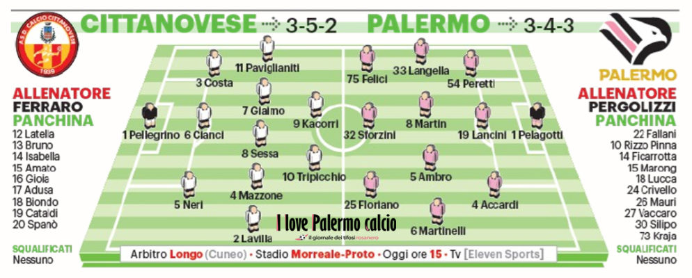 In altro le probabili formazioni di Cittanovese-Palermo a cura del “Giornale di Sicilia”.