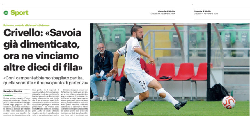 L’edizione odierna del “Giornale di Sicilia” riporta le dichiarazioni di Roberto Crivello, difensore del Palermo: «La sconfitta l’abbiamo presa male, non c’eravamo abituati. Però Pergolizzi ci ha tirato su, ci ha ricordato che abbiamo fatto dieci vittorie e la sconfitta è un incidente di percorso. Dobbiamo ripartire subito, in questi due giorni stiamo andando di nuovo a duemila. Abbiamo reagito bene. Ci siamo detti le cose che si dicono nello spogliatoio dopo una sconfitta, cose normali». Ficarrotta? «Luca è stato il primo a scusarsi con la squadra – prosegue il difensore palermitano – c’è rimasto male. Non abbiamo perso per colpa sua, però. Anche in undici abbiamo sbagliato partita. È stata la prima volta in cui abbiamo fatto male e abbiamo creato poco». La squalifica di Ficarrotta, però, priverà il Palermo di un attaccante in una fase importante del campionato, creando ulteriori problemi a Pergolizzi, già alle prese con altre assenze, anche nel reparto avanzato. «Pesa tanto – ammette Crivello – perché oltre a lui mancherà anche Sforzini. Numericamente è un’assenza importante, ma fortunatamente rientra Santana e abbiamo un’alternativa. Spero per Ficarrotta che questo periodo passi in fretta, soprattutto a livello di testa. Deciderà l’allenatore se cambiare o meno. Abbiamo subito però una sconfitta in undici partite, non penso che tatticamente ci sia qualche problema. Forse così ci svegliamo tutti perché ci eravamo un po’ adagiati su questo vantaggio. Adesso si riparte e facciamo altre dieci vittorie, questo deve essere l’obiettivo». Contando anche sull’appoggio della società, che non ha fatto pesare ai giocatori la sconfitta: «La dirigenza ci ha detto di stare tranquilli, una sconfitta non cancella il lavoro fatto finora. Dobbiamo stare sereni, ma anche lavorare di più. Perché questo vantaggio non basta e dobbiamo ripartire con una vittoria». Impossibile pensare in un nuovo scivolone, specialmente contro il fanalino di coda del torneo. Guai però a sottovalutare la Palmese: «Sarà una battaglia, tutte le squadre che giocano contro di noi vogliono fare la partita della vita. Non guardiamo la classifica, nel calcio ne abbiamo viste di tutti i colori. Non è facile, ma dobbiamo pensare a ripartire. Forse nelle ultime trasferte, avendo vinto per un gol di scarto, ci siamo abbassati negli ultimi cinque-dieci minuti per tenere il risultato. Questa è una cosa che non bisognerebbe fare, speriamo di avere uno scarto più ampio, ma alla fine l’importante è vincere e in trasferta l’abbiamo sempre fatto. Fisicamente sto bene e il nuovo ruolo è meno stancante rispetto al terzino. Mi piace, mi allungherà la carriera»”.