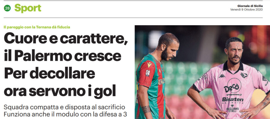 L’edizione odierna del “Giornale di Sicilia” parla dell’avvio di campionato del Palermo. Tanto sacrificio, ma zero gol – scrive il quotidiano. Il Palermo è l’unica squadra del girone C a non avere ancora realizzato una rete dopo due giornate di campionato.
