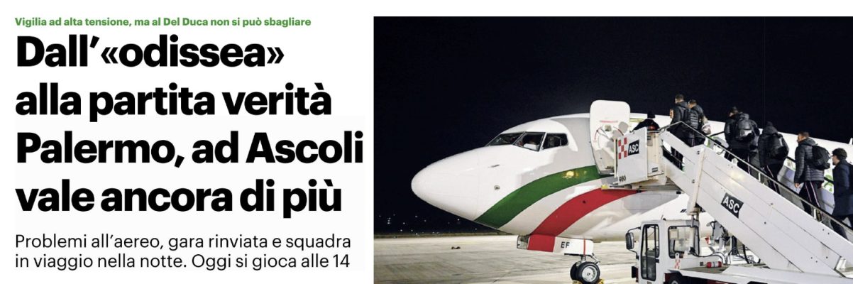 L’edizione odierna de “Il Giornale di Sicilia” si sofferma sulla disavventura del Palermo all’aeroporto in occasione della partenza per Ascoli.
