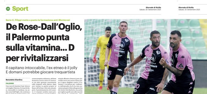 L’edizione odierna de “Il Giornale di Sicilia” si sofferma su due pedine fondamentali per Filippi: De Rose e Dall’olio.