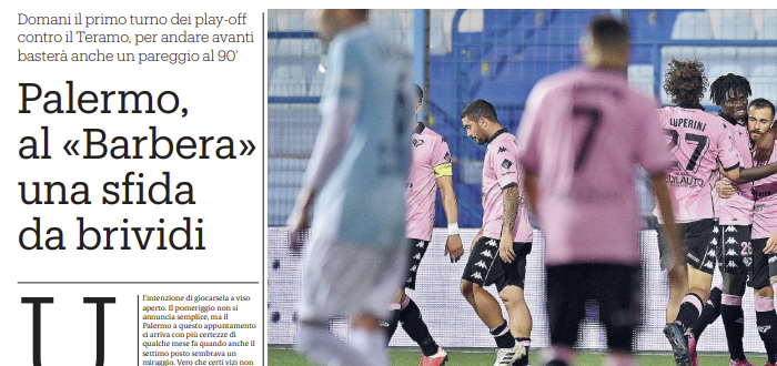 Gds: “Domani il primo turno dei playoff contro il Teramo. Palermo, al «Barbera» una sfida da brividi”