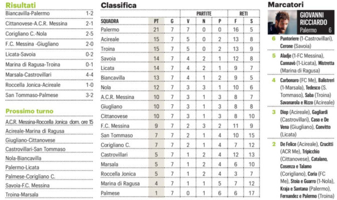 L’edizione odierna del “Giornale di Sicilia” si sofferma sulla prossima giornata di Serie D, che vedrà il Palermo ospitare il Licata. In foto, il programma e la classifica aggiornata del Girone I.