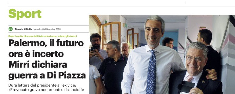 Gds: “Dopo l’uscita di scena dell’italo-americano, volano gli stracci. Palermo, il futuro ora è incerto. Mirri dichiara guerra a Di Piazza”