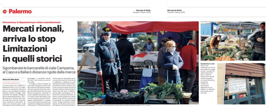 Gds: “Emergenza Coronavirus. Palermo. Mercati rionali, arriva lo stop. Limitazioni in quelli storici”