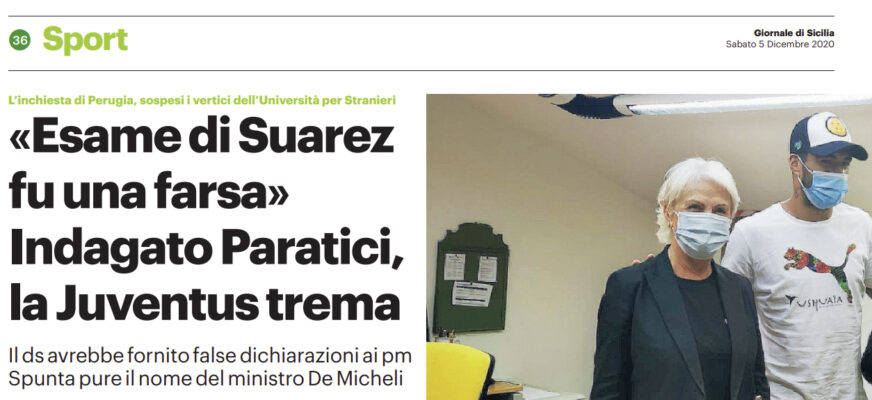 L’edizione odierna del “Giornale di Sicilia” si sofferma sulla vicenda relativa al conseguimento del passaporto italiano da parte di Luis Suarez.