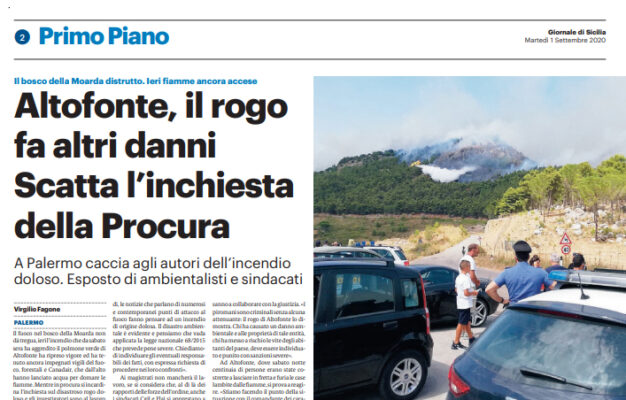 L’edizione odierna del “Giornale di Sicilia” si sofferma sui roghi di Altofonte. Ieri l’incendio ha ripreso vigore, nel mentre in procura si incardina l’inchiesta sul disastroso rogo doloso e gli investigatori sono al lavoro per dare un volto ai criminali