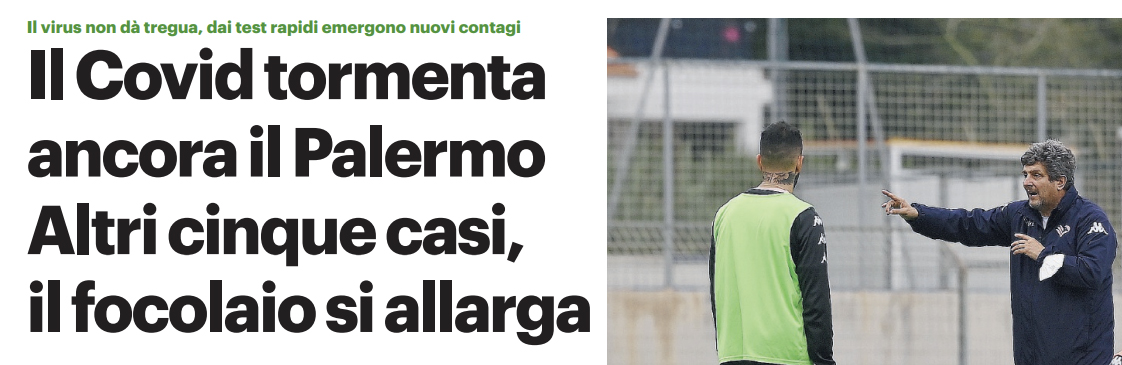 Gds: “Il Covid tormenta ancora il Palermo. Altri cinque casi, il focolaio si allarga”