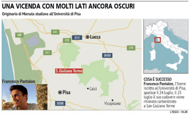Gds: “Il giovane universitario di Marsala trovato carbonizzato nelle campagne di Pisa. Un mistero la fine dello studente”