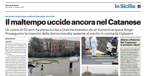 L’edizione odierna de “Il Giornale di Sicilia” si sofferma sul maltempo che ha messo in ginocchio la città di Catania.