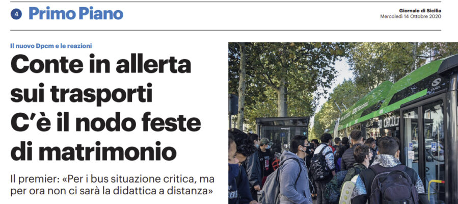 L’edizione odierna del “Giornale di Sicilia” si sofferma sull’ultimo Dpcm di Giuseppe Conte.