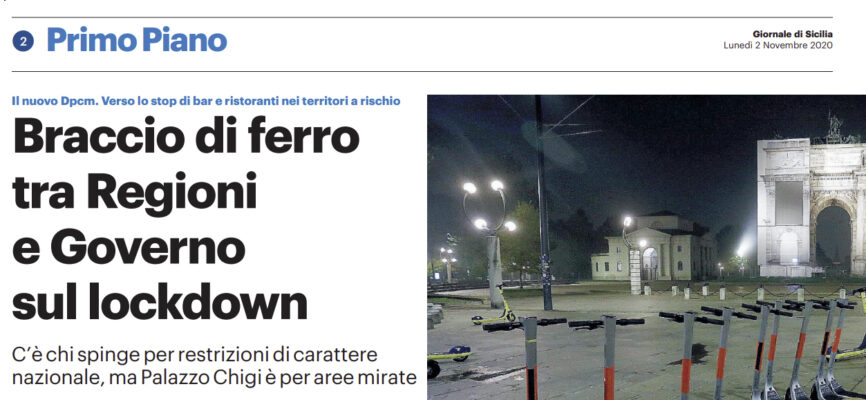 Gds: “Il nuovo Dpcm. Verso lo stop di bar e ristoranti nei territori a rischio. Braccio di ferro tra Regioni e Governo sul lockdown”