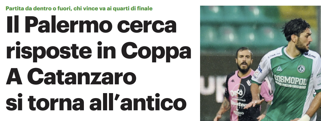 L’edizione odierna de “Il Giornale di Sicilia” si sofferma sulla gara di oggi tra Catanzaro e Palermo valida per gli ottavi di coppa Italia Serie C.