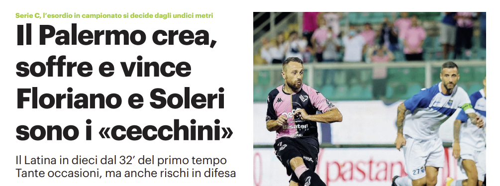 Gds: “Il Palermo crea, soffre e vince. Floriano e Soleri sono i «cecchini»”