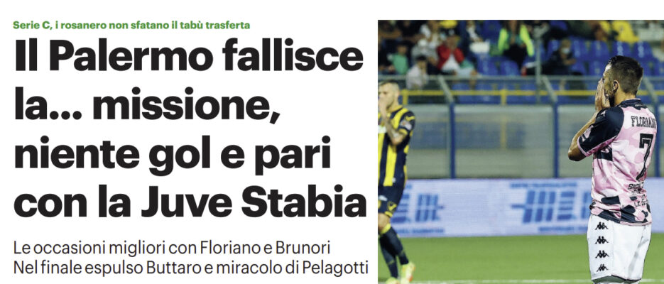 Gds: “Il Palermo fallisce la…missione, niente gol e pari con la Juve Stabia”