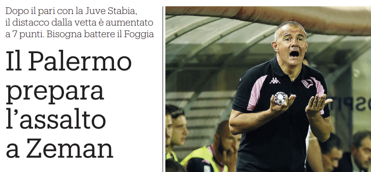 Obbligatorio vincere. Inutile girarci attorno e trincerarsi dietro il ritornello che il campionato è ancora lungo: il Palermo domani deve battere il Foggia se non vuole davvero vedere scappare chi sta davanti (il Bari), che è già abbastanza lontano dopo l’ultimo pareggio in casa della Juve Stabia.
