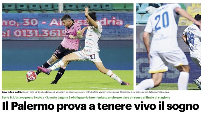 Il Palermo cerca oggi a Venezia un risultato, sarebbe meglio anche una prestazione, per dare un senso a questo finale di stagione. Un sens0 che non sia una stanca deriva in attesa di una salvezza ormai vicina. Non vogliamo dire che la squadra rosanero debba necessariamente andare in Serie A, perché ci sono squadre più forti. Ma che almeno ci provi con tutto quello che può dare, fino all’ultima giornata. Ci accontenteremmo di sei partite giocate al meglio delle proprie possibilità, con la sicurezza è la personalità mostrate a Pisa, a Bolzano, in casa con la Reggina o col Bari. Sei partite vibranti, col cuore in mano, senza sbavature tattiche, senza la paura e le incertezze mostrate contro il Cosenza e nel secondo tempo di Parma. Sei partite che non solo possano alimentare la speranza di approdare ai playoff distanti solo tre punti, ma che possano servire anche da traccia per la costruzione del prossimo Palermo.