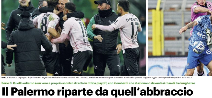 L’edizione odierna de “Il Giornale di Sicilia” si sofferma sul Palermo che riparte dall’abbraccio a Corini contro il Pisa.