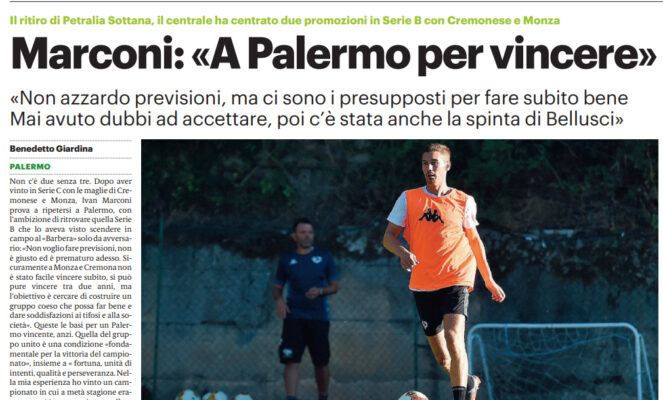 Gds: “Il ritiro di Petralia Sottana, il centrale ha centrato due promozioni in Serie B con Cremonese e Monza. Marconi: «A Palermo per vincere»”