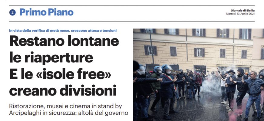 L’edizione odierna del “Giornale di Sicilia” si sofferma sulle riaperture.
