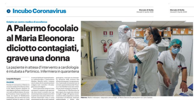Gds: “Incubo Coronavirus. A Palermo focolaio al Maria Eleonora: diciotto contagiati, grave una donna”