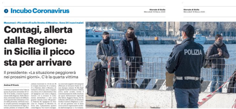 Gds: “Incubo Coronavirus. Contagi, allerta dalla Regione: «In Sicilia il picco sta per arrivare»”