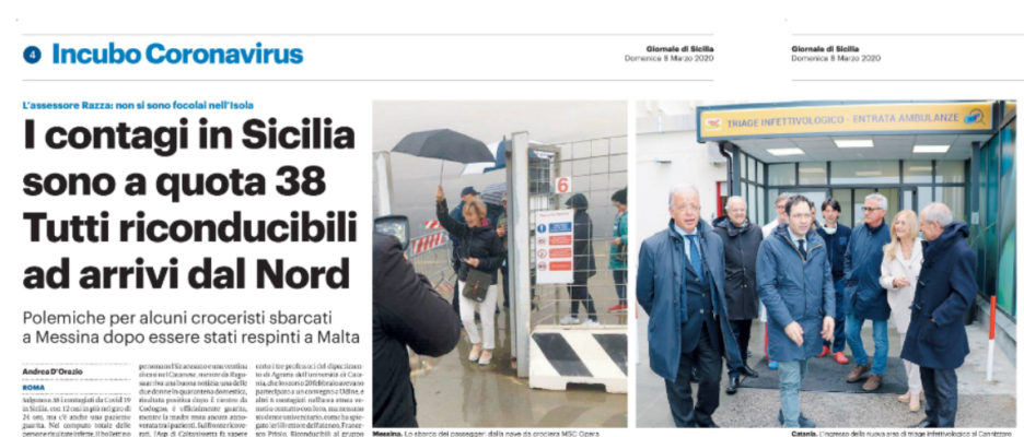 Gds: “Incubo Coronavirus. I contagi in Sicilia sono a quota 38. Tutti riconducibili ad arrivi dal Nord”