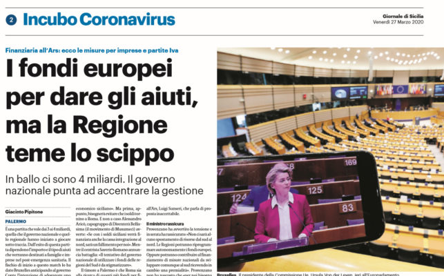 Gds: “Incubo Coronavirus. I fondi europei per dare gli aiuti, ma la Regione teme lo scippo”