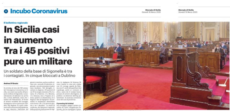 Gds: “Incubo Coronavirus. In Sicilia casi in aumento. Tra i 45 positivi pure un militare”