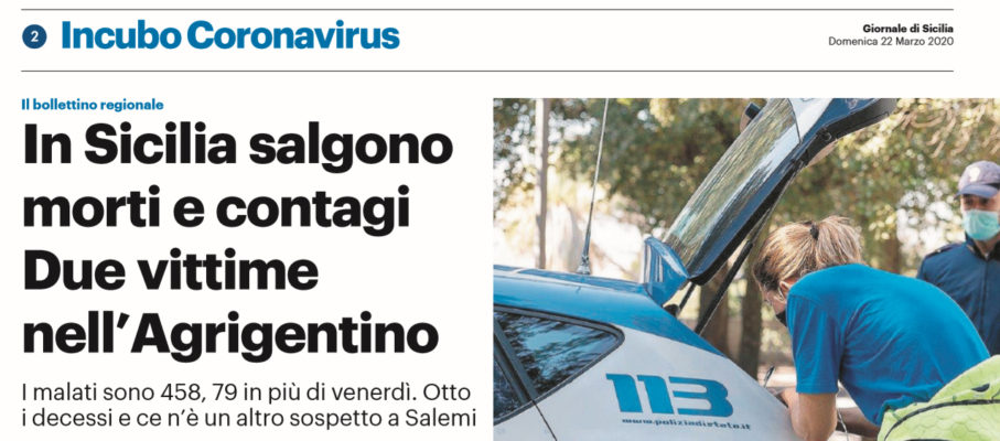 Gds: “Incubo Coronavirus. In Sicilia salgono morti e contagi. Due vittime nell’Agrigentino”