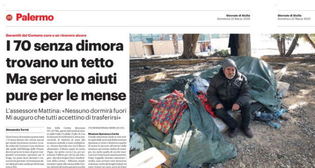 Gds: “Incubo Coronavirus. Palermo. I 70 senza dimora trovano un tetto. Ma servono aiuti pure per le mense”