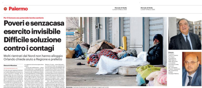 Gds: “Incubo Coronavirus. Palermo, poveri e senza casa, esercito invisibile. Difficile soluzione contro i contagi”