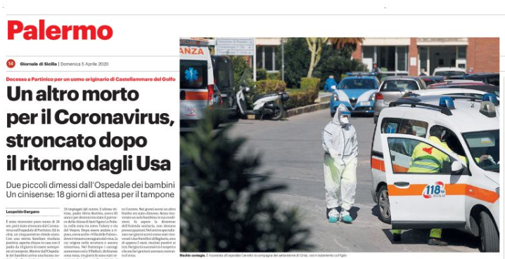 Gds: “Incubo Coronavirus. Partinico. Un altro morto per il Coronavirus, stroncato dopo il ritorno dagli Usa”